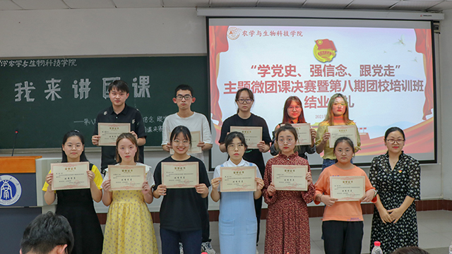 对学员们的微团课讲述,在场评委也进行了精彩点评并进行授课示范。本科农学二支部党员代表张帅同学对参赛选手们的表现给予高度赞赏,立意明确,能较为准确的把握主题,同时也给予了一些议,希望同学们在讲演中可联系所学专业或其他知识,将艰苦奋斗、开拓进取的精神加以延展。学院团委许莹竹老师指出“我来讲团课”主题微团课比赛”是学院团校培训班多年来开展的一项特色活动,旨在鼓励同学们积极学习党史知识,锻炼演讲能力。她从微团课的主题选择、内容设计、逻辑展开、充实案例资料、如何讲授等环节给同学们以指导。同时,许老师还以《中国共产党的初心坚守》为主题,给同学们现场示范了一堂精彩生动的微团课,让同学们受益匪浅。经评委评审,杨秋妮、李洁、王秋予、范绍鹏、王海玲等五位同学获三等奖;韦沧潇、程郅涵、严庆等三名同学获二等奖;2020级植物生产类四班的张涛同学荣获一等奖。