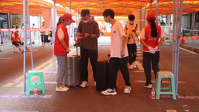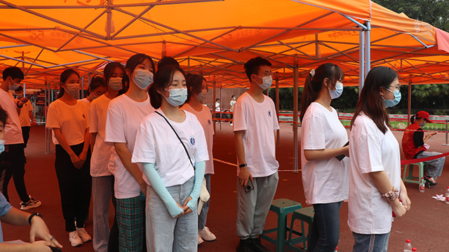 立即在全院范围内广泛动员高年级同学积极报名参与到志愿服务工作中来,一共招募到165名志愿者,并于9月9日晚上召开线上会议对志愿者就工作流程、纪律要求、疫情防控细节等做集中培训。9月10日上午6点30分,奈飞工厂