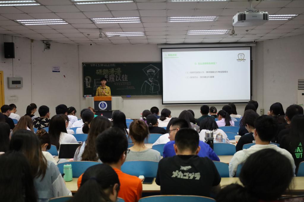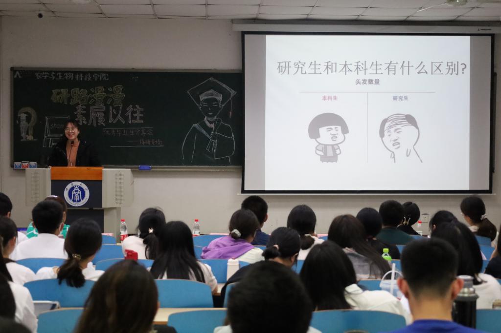 最后一位进行分享的是推免本院的胡舒婷同学,她以自己保研后的状态为切入点,分享了个人对于研究生和本科生学习目标、学习方法等差异的认识,强调了提前规划的重要性,她建议本科生要积极进入实验室,锻炼自己的科研能力。跟着导师学习、多与学长学姐交流、学习他们的实验经验,都可以成为保研准备的"加速通道"。