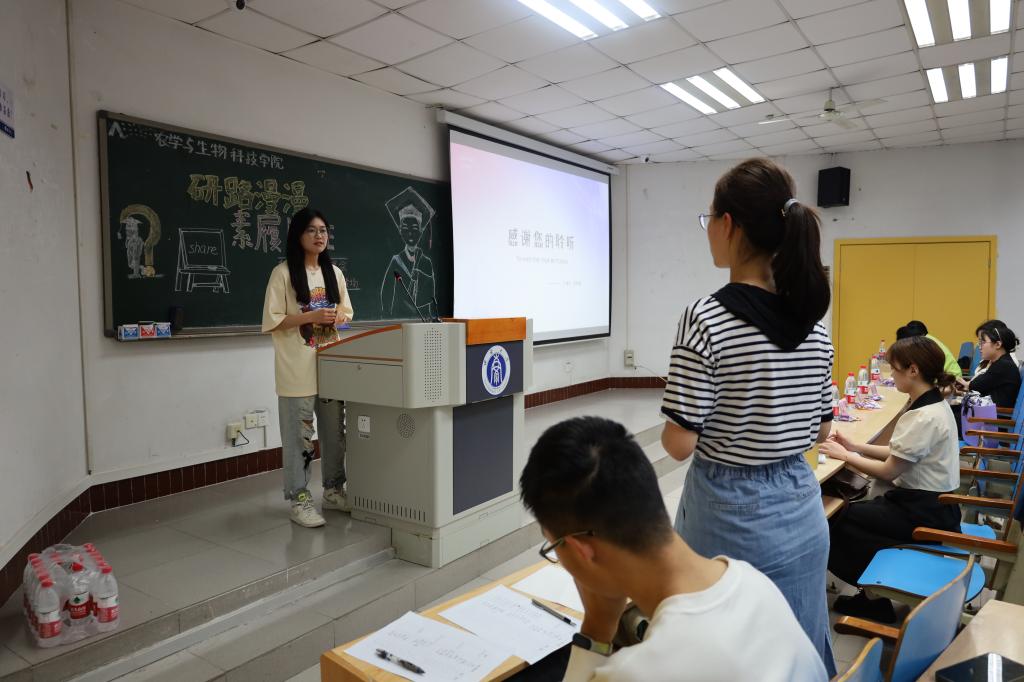 于32教312教室举办了优秀毕业生保研经验分享会,由五位获得推免研究生资格的学长学姐向低年级同学们分享自己在保研路上的宝贵的经验,并积极为同学们答疑解惑。2021级辅导员高荣蓉老师也出席了本次分享会。
