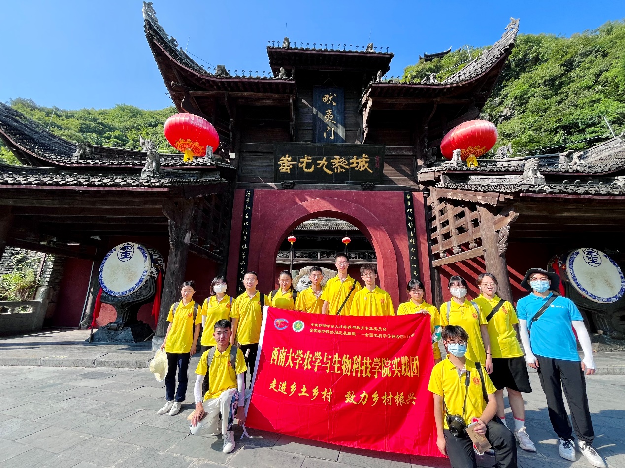 赴彭水师生服务队前往彭水县蚩尤九黎城参观学习苗族文化,并于彭水县润溪乡樱桃井村便民服务中心向村民开展“乡风文明建设”与“百千万工程”政策宣讲。