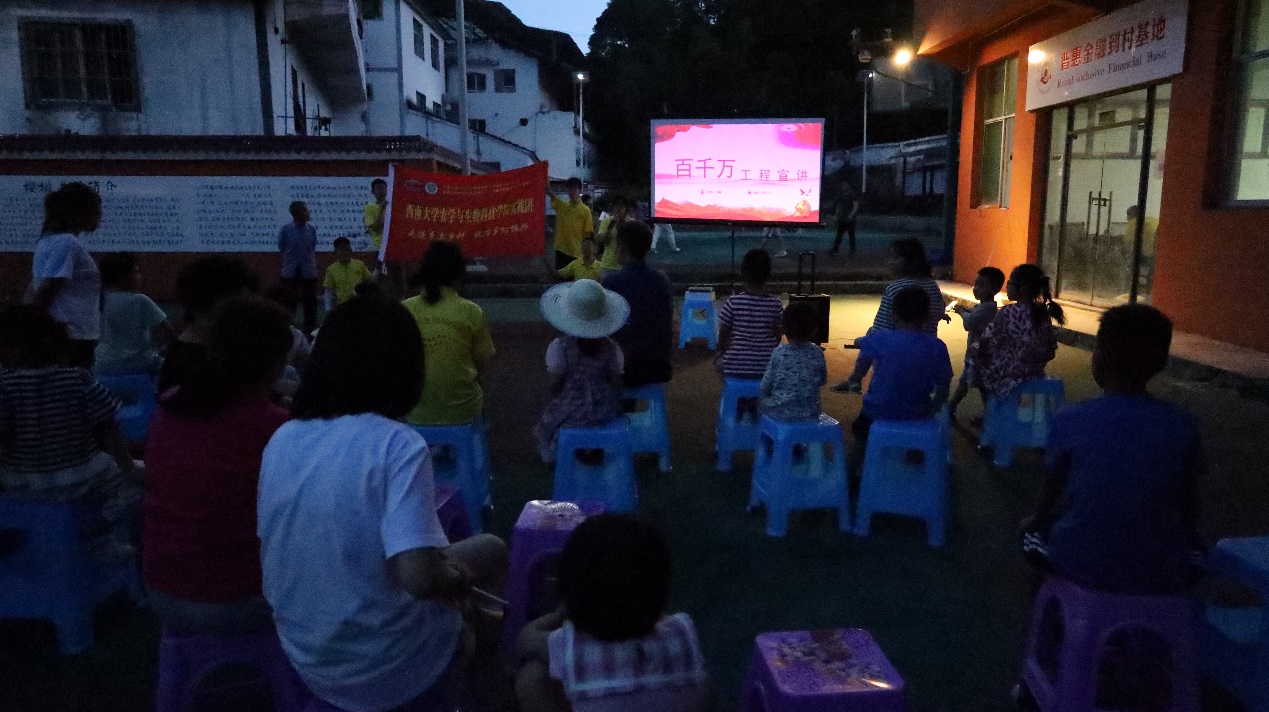 为更好助力乡村治理、督促村民加强文明乡风建设,宣传解析“百千万工程”,7月8日至9日,实践队在樱桃井村便民服务中心广场向村民就“乡风文明建设”与“百千万工程”开展宣讲,包括政策解读、含义解释、案例介绍、建议督促等。