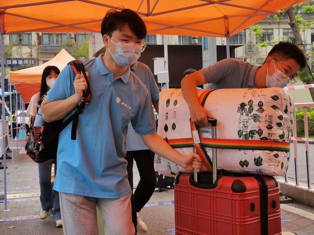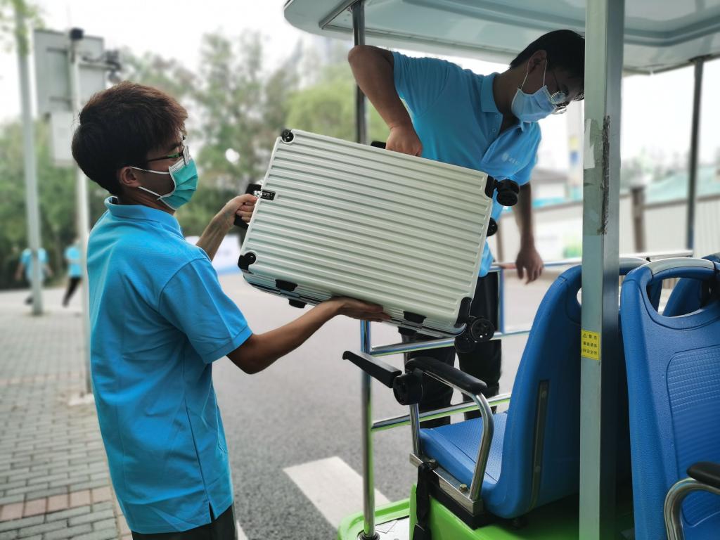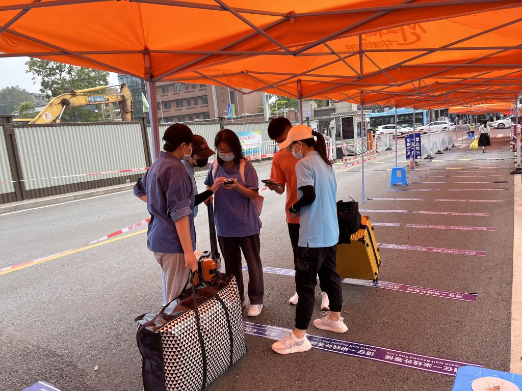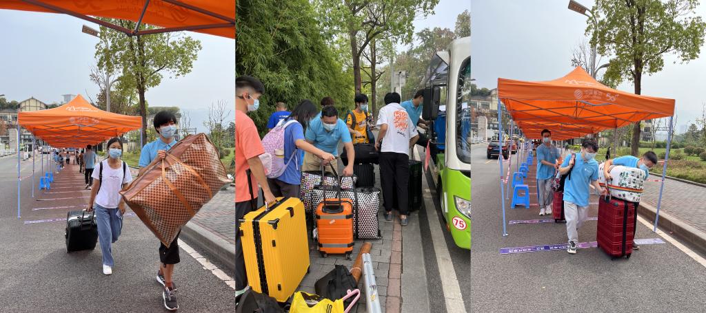 在三号门迎新现场,根据工作需要,志愿者被分配到不同的岗位,分别负责校门外引导和体温检测、入校通道流量控制和行李帮运、校门内核验两码一证明、指引各园区方向并协助行李转运、观光车行李搬运等工作,为新同学们提供最有力的安全保障。志愿者们热情搬运行李、指引方向、介绍园区,让新同学入校即感受到暖心关怀和周到服务。
