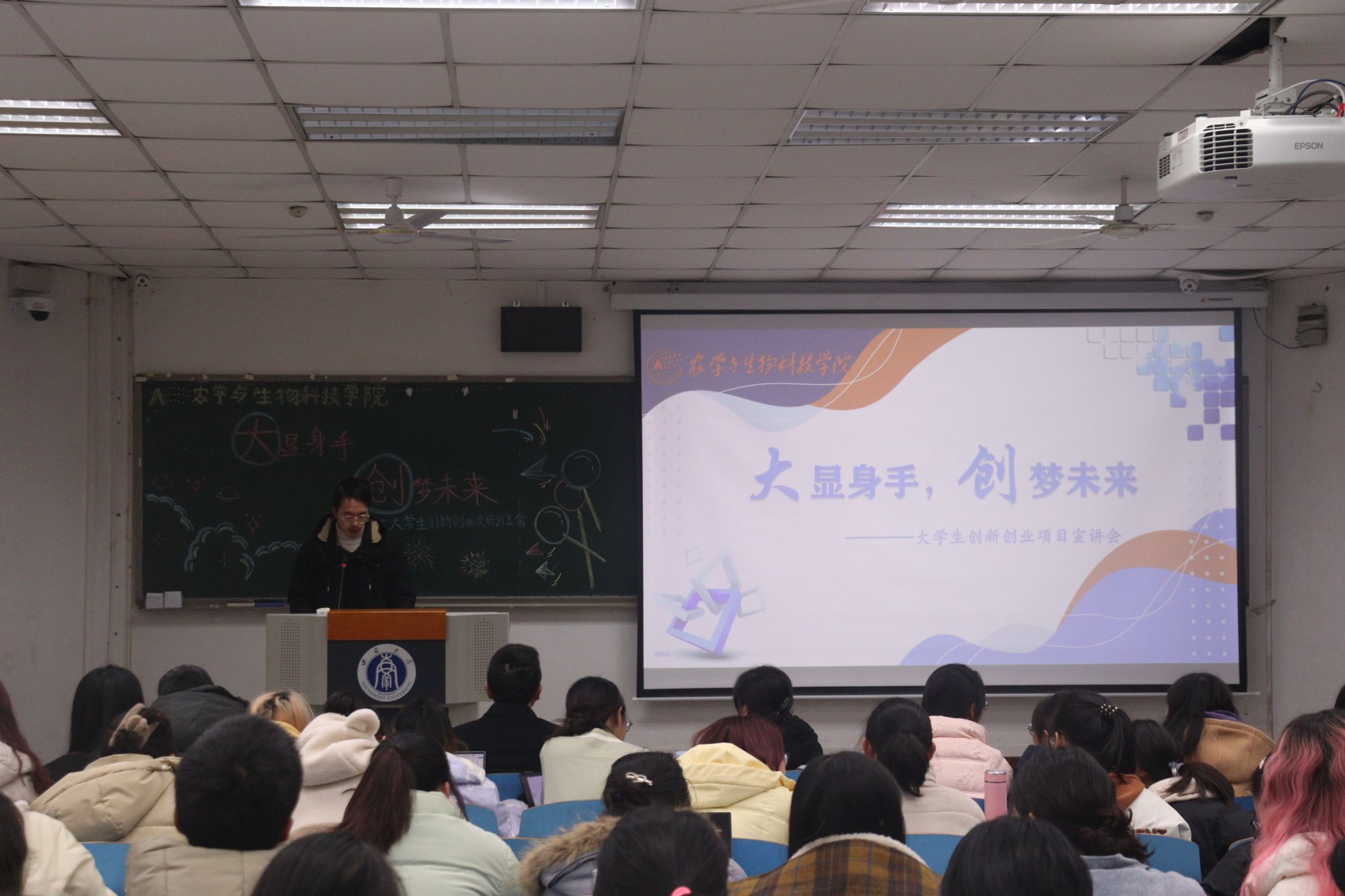 于2024年3月1日下午3:30在32-213教室举办“大显身手,创梦未来”大学生创新创业训练计划项目分享会。学院副院长张建奎老师、2021级隆平实验班班主任李云峰老师、2022级辅导员白祯老师、优秀大创项目负责人代表张雪同学出席分享会,2022级、2023级同学共同参与。