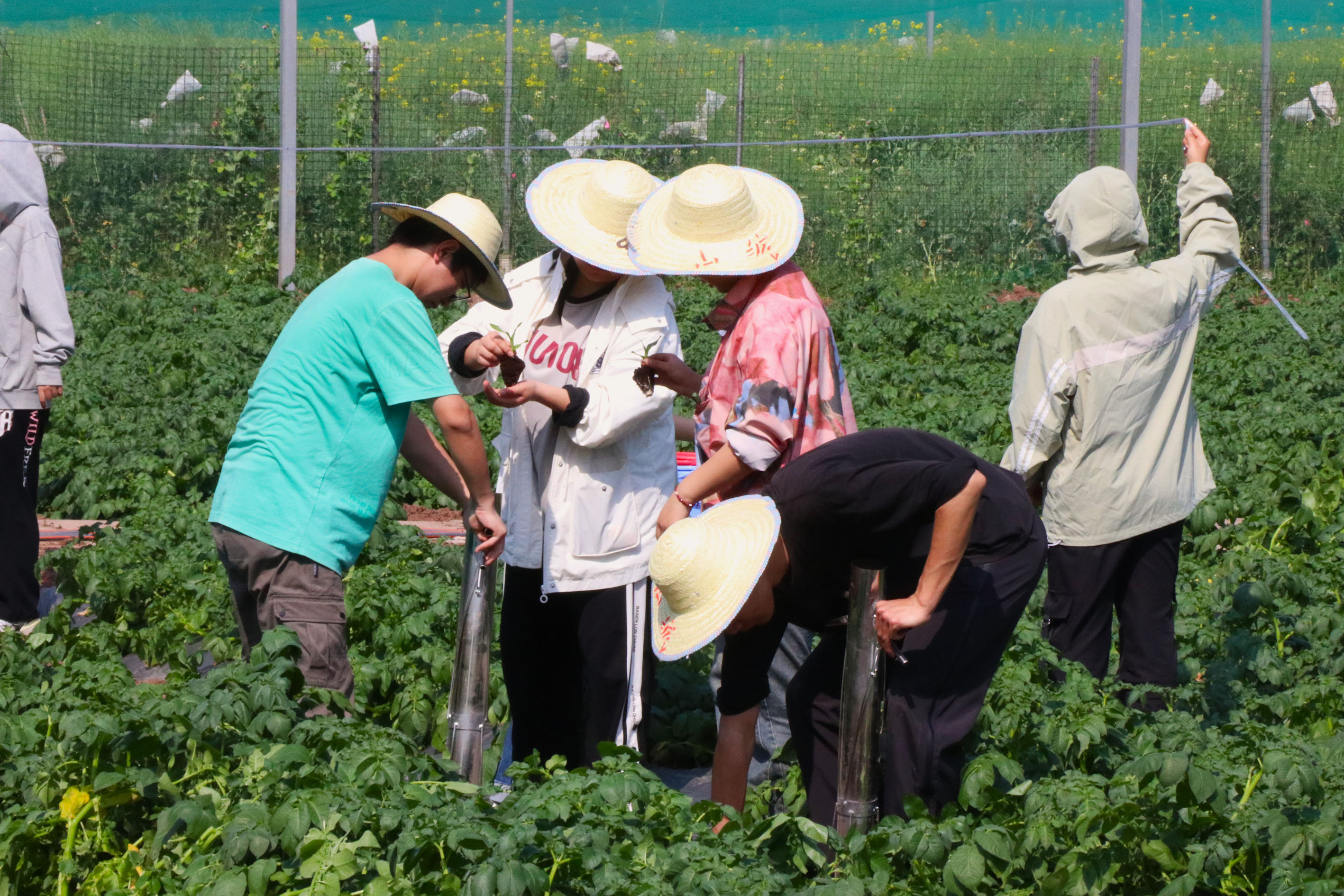 本次移栽活动分为上午和下午两个时段进行,34名体验者分别跟随农学专业的同学们和《作物生产实训》课程授课教师赵勇来到奈飞工厂