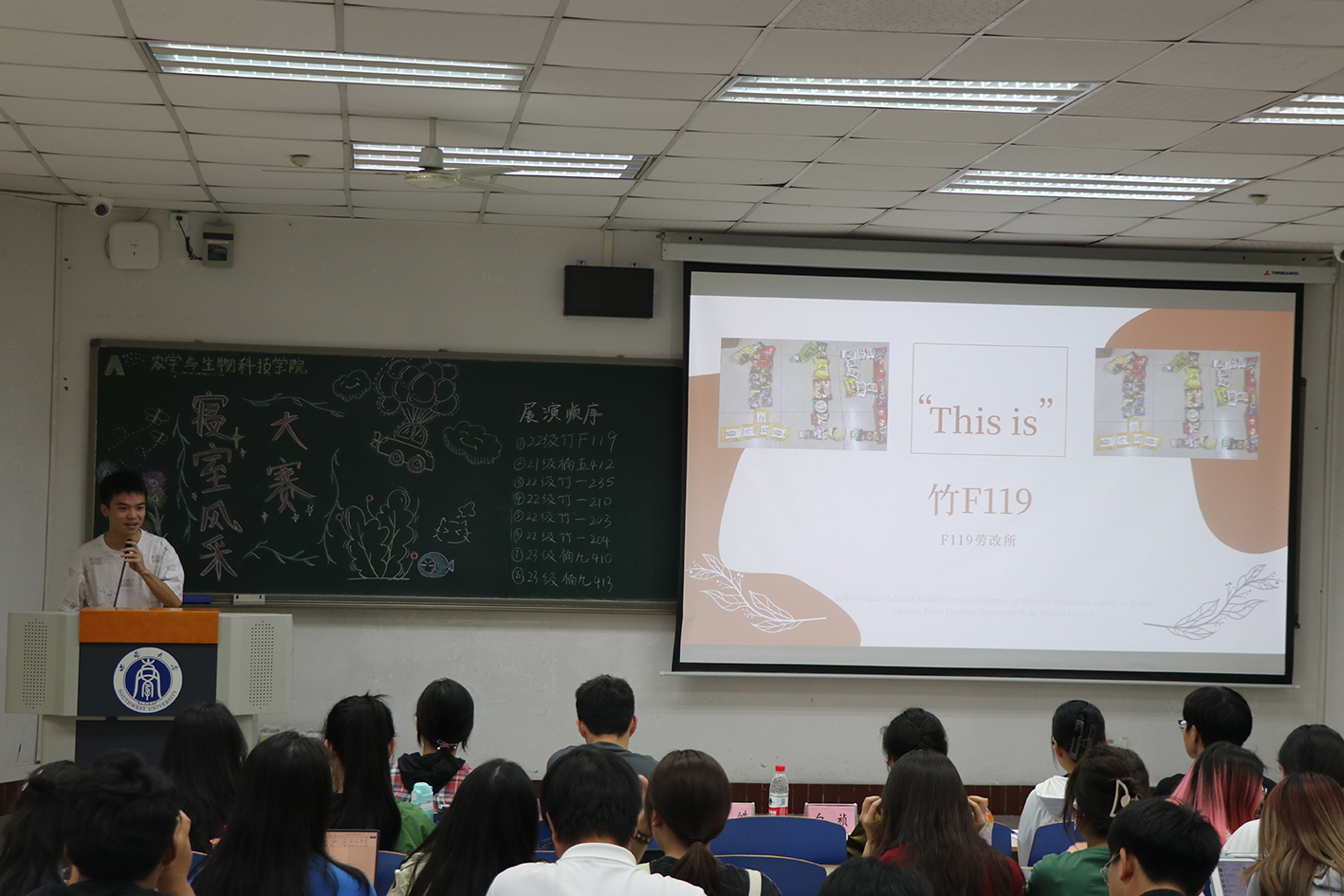 决赛现场,参赛寝室代表就寝室成员、环境卫生、精神风貌、学风建设、荣誉奖励等方面依次进行PPT和VLOG展示。在公平、公正、公开的原则基础上,经评委打分,楠五412、竹F119、楠九410、楠九413获三等奖;竹一235、竹一204、竹一210获二等奖;竹一203荣获一等奖。