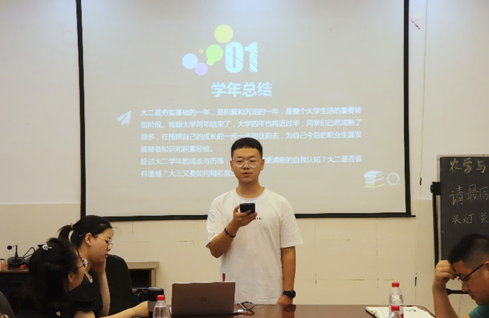 时光飞逝,流水悄然。在大二即将结束,大学生活已然过半之际,为了帮助同学们做好大三学习生活规划,同时更好地思考未来职业生涯,6月24日下午,由2020级区域一班和区域二班联合举办的“不负青春,与梦同行”交流分享主题班会拉开了帷幕。会议邀请了大三、大四年级区域专业优秀学生代表王卓雅、李欣和刘玲洁进行经验分享,2020级区域1班班主任陈琼、区域2班班主任李燕、辅导员王皓、区域系教师徐鑫以及2020级区域专业全体学生共同参加班会。会议从学生代表学年总结、优秀学长学姐经验分享、班主任及导师发言、优秀寝室代表分享和辅导员发言等六个方面展开,班会由区域1班李洁同学主持。
