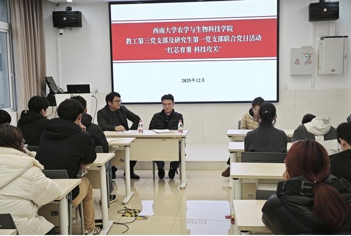 2025年12月12日下午,学院教师第三党支部与硕士生第一党支部在37教207会议室联合开展了“红芯育薯·科技攻关”主题党日活动,两个党支部全体党员参加,活动由研究生第一党支部书记胡耀方主持。