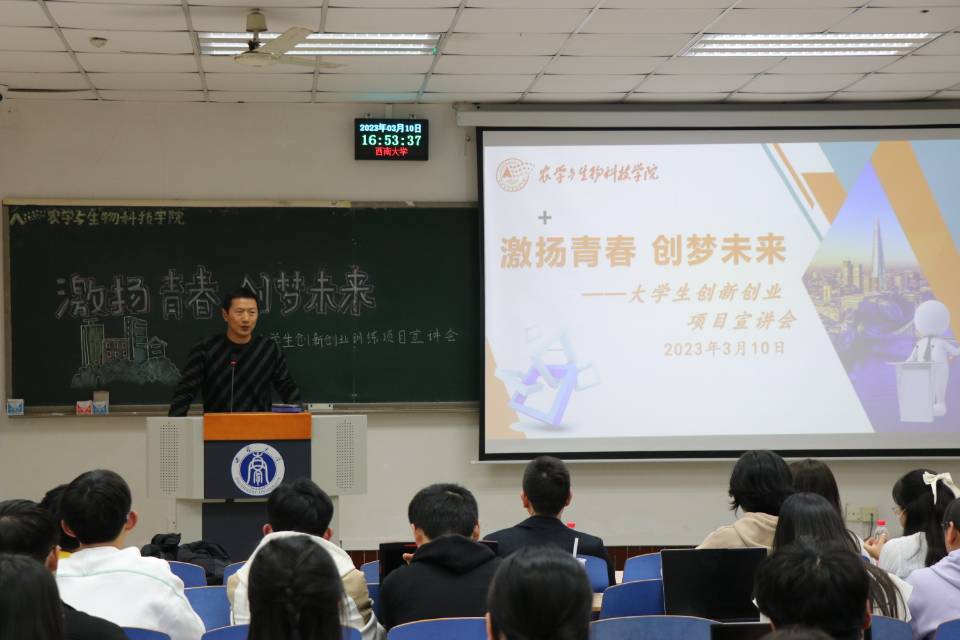 于32教314教室举行大学生创新创业训练计划项目宣讲会,学院副院长张建奎老师、2021级隆平班班主任兼大创项目指导老师李云峰教授、2021级辅导员高荣蓉老师出席活动,2021级隆平实验班全体学生及其他各年级各专业学生参与,宣讲会由学院学生会就业创业部工作人员邱浩宇同学主持。