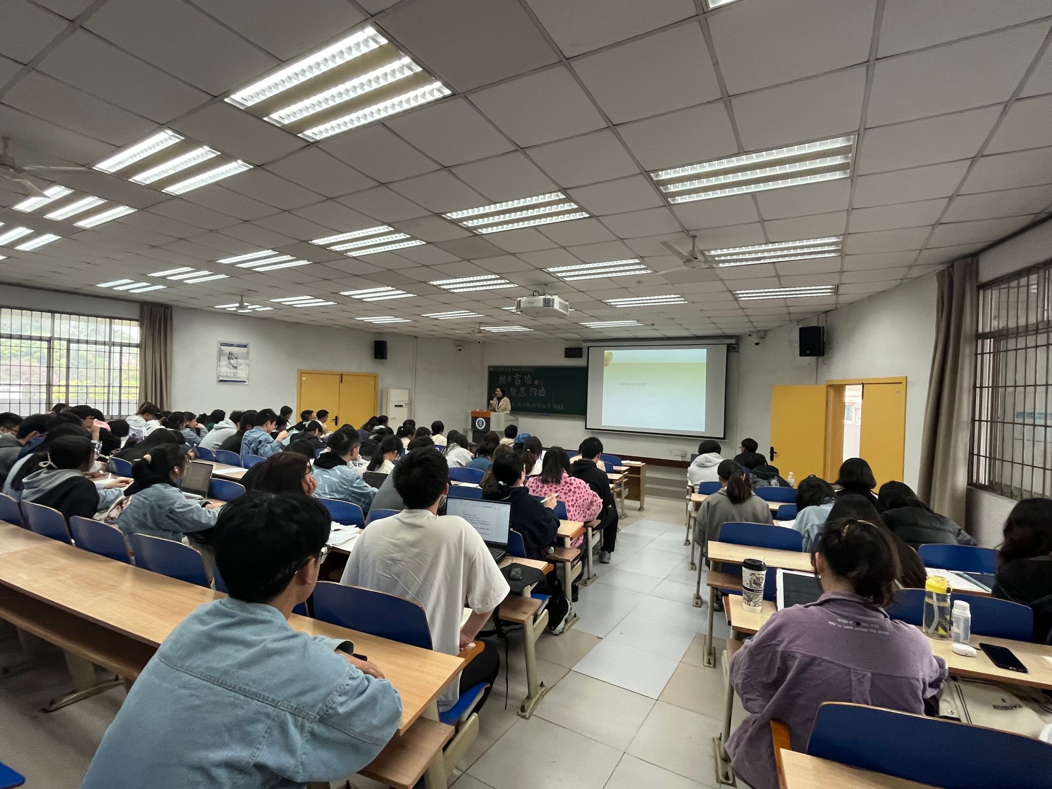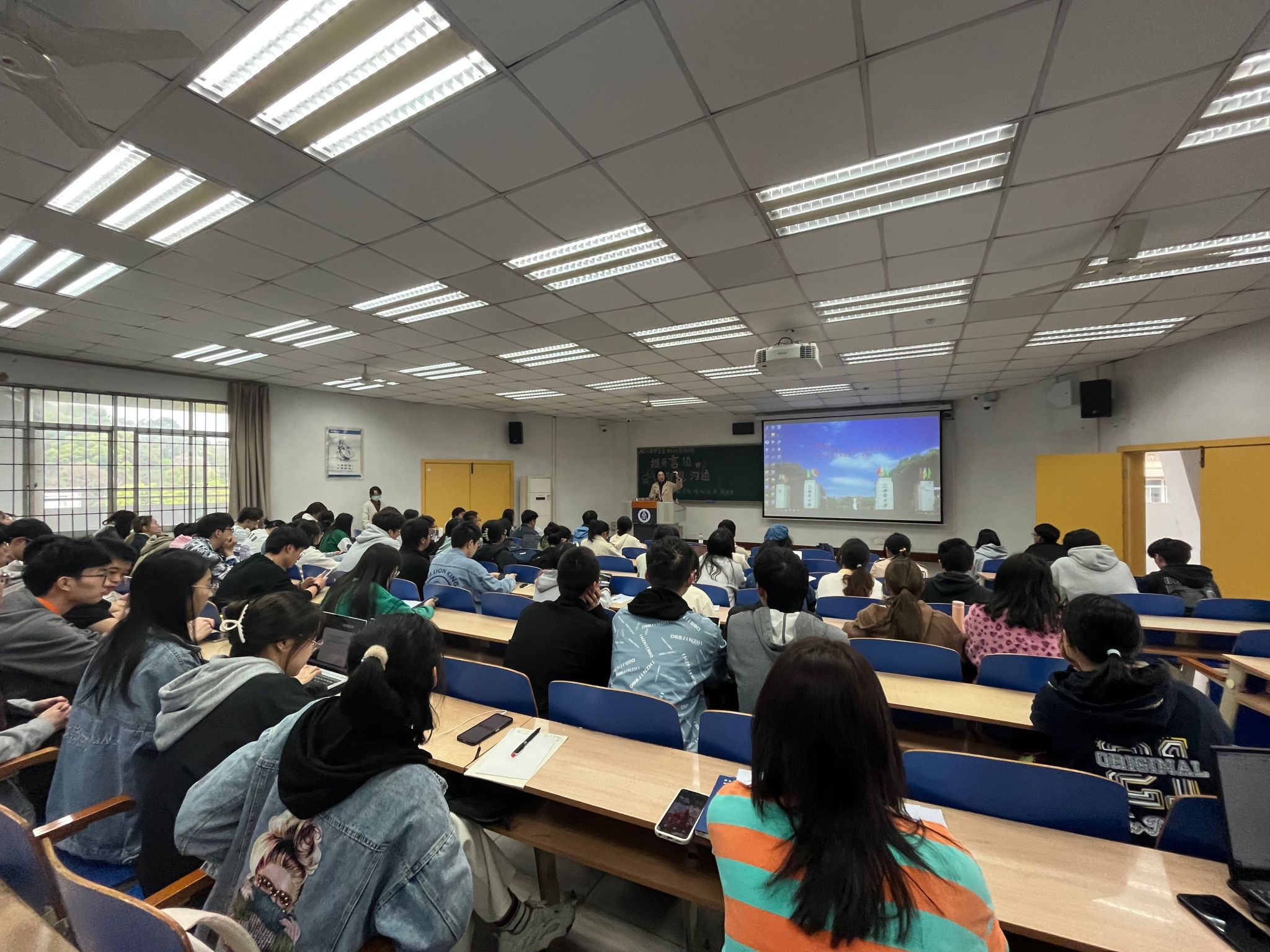 毛老师用“潇洒上台,勇敢开口,拼尽全力,完美莫求”十六字箴言结束讲座,并鼓励同学们抓住每次上台发言的机会,积极发言,大胆发言,学会“说话”,提升语言应用能力。