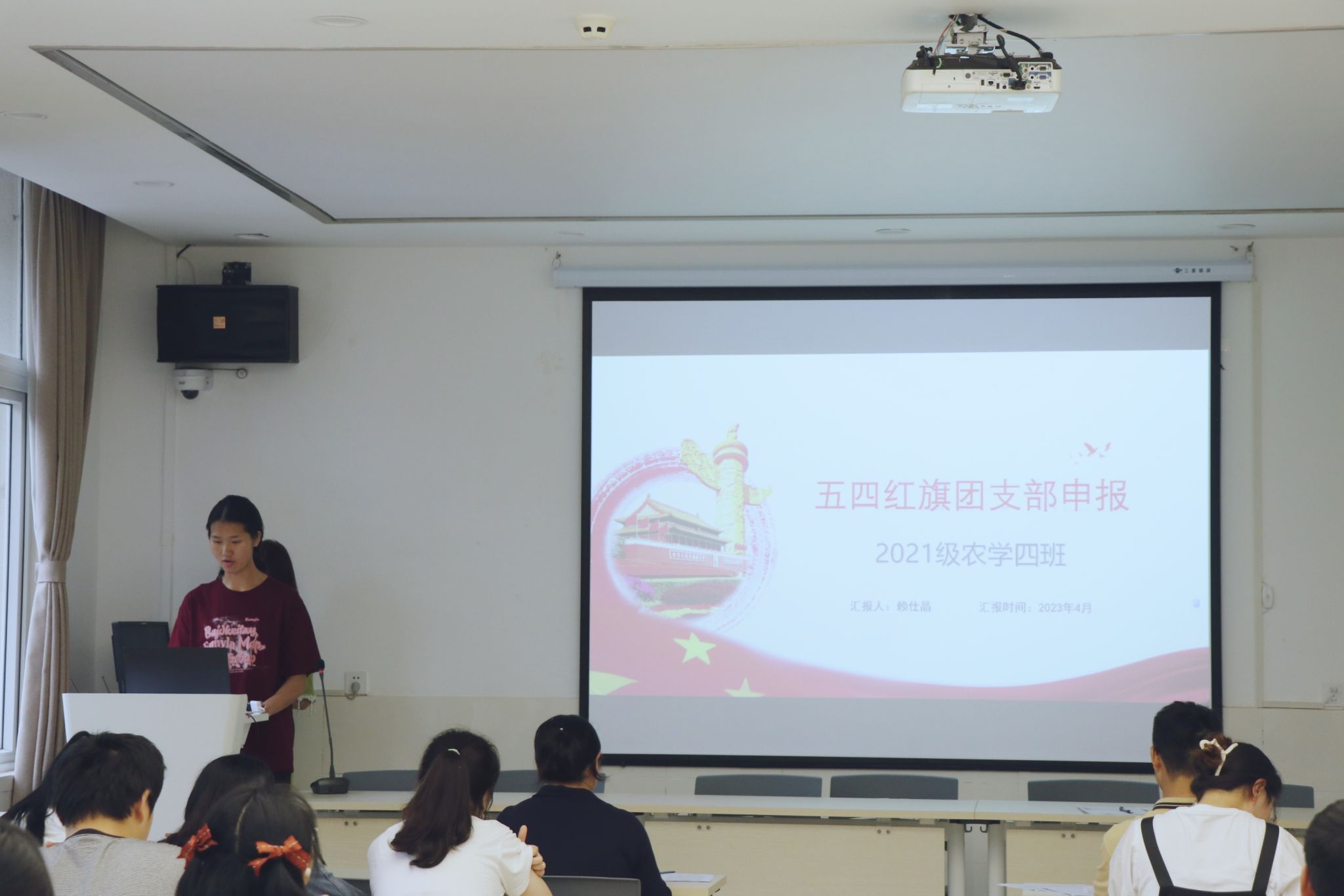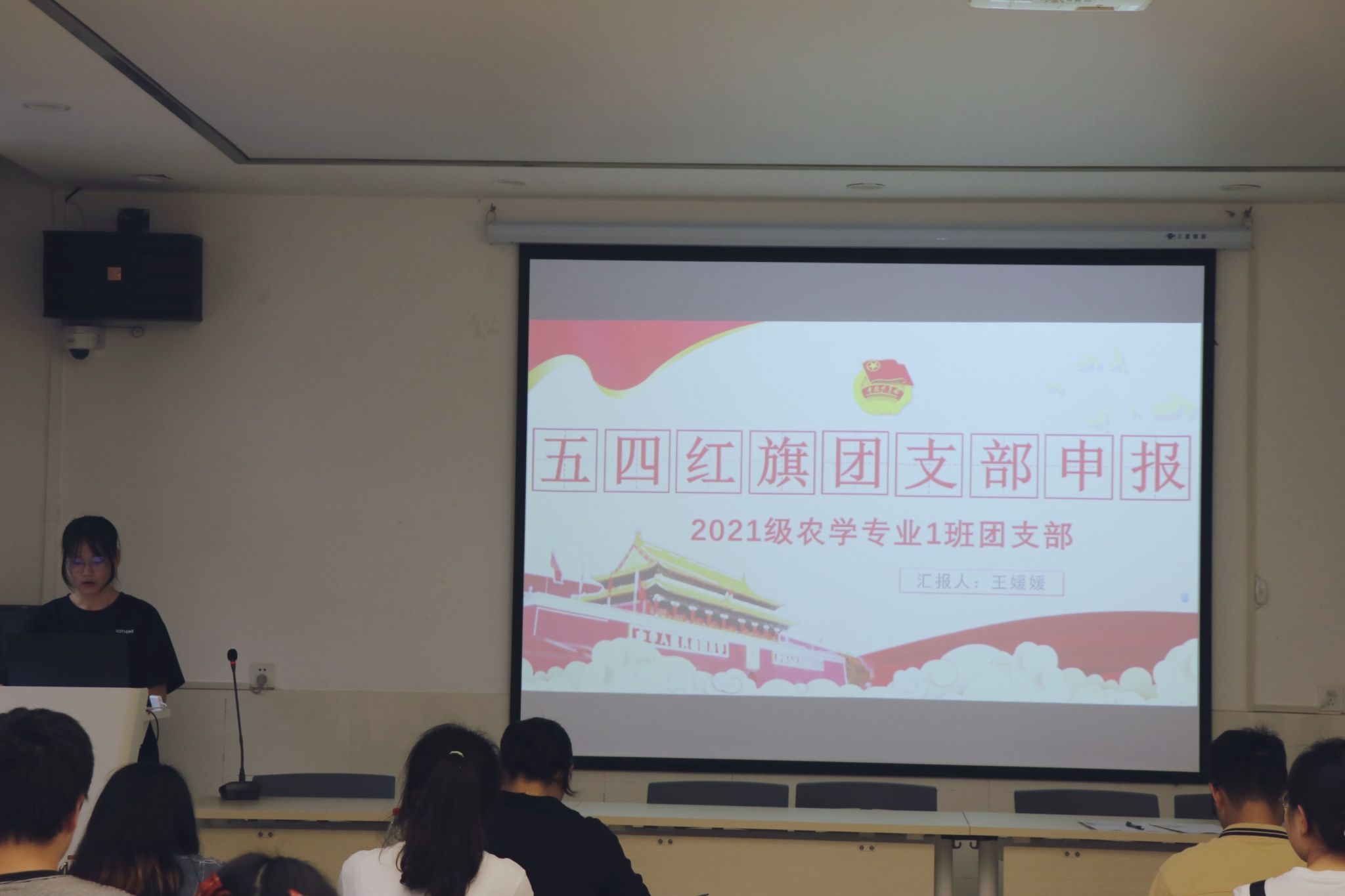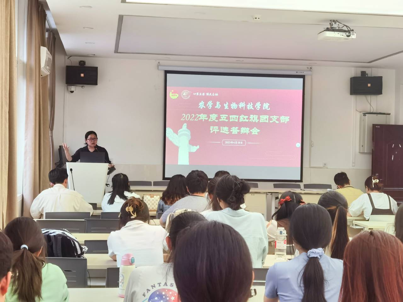 “五四红旗团支部”评选答辩会。团委书记兼2019级辅导员许莹竹老师、2020级辅导员王皓老师、2022级辅导员白祯老师出席会议,各团支部代表到会学习观摩。