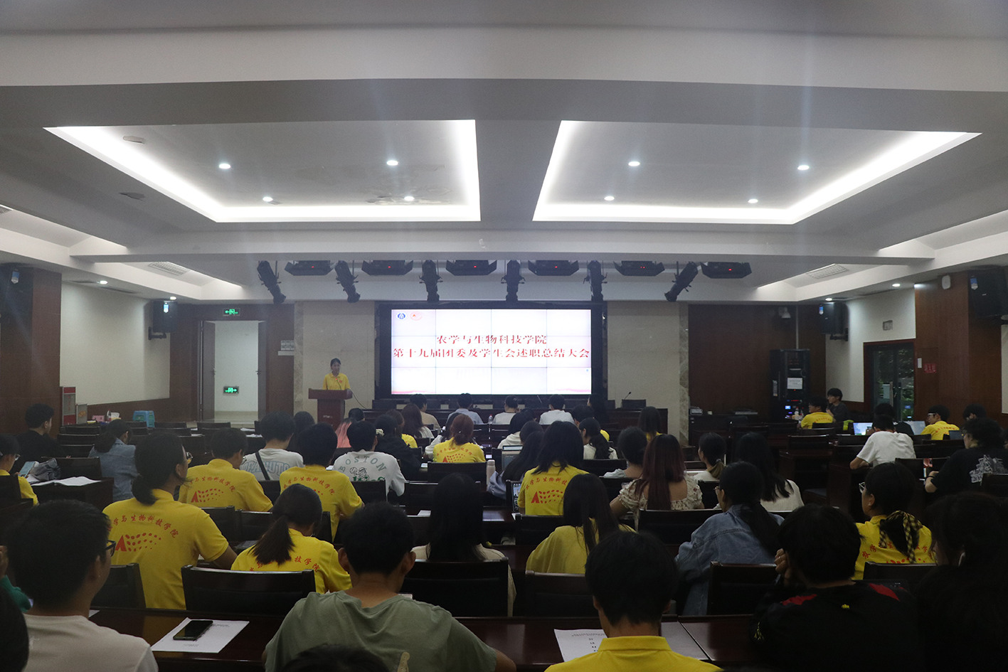 第十九届团委及学生会述职总结大会于南区活动中心106会议室顺利召开。学院团委书记许莹竹老师出席会议,第十九届团委及学生会全体成员共同参会。