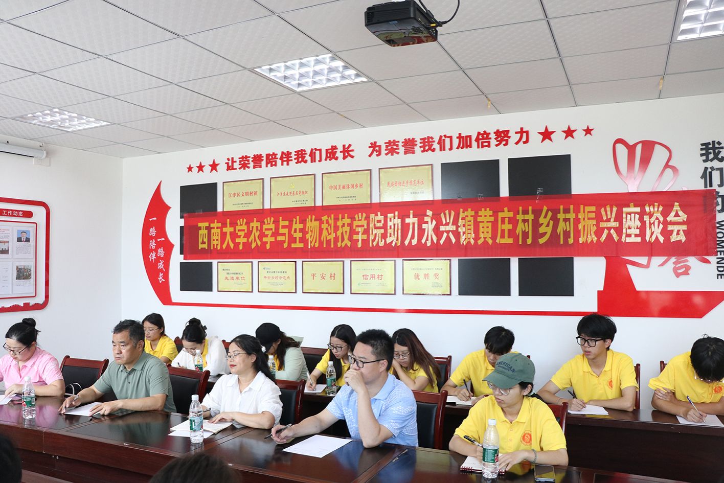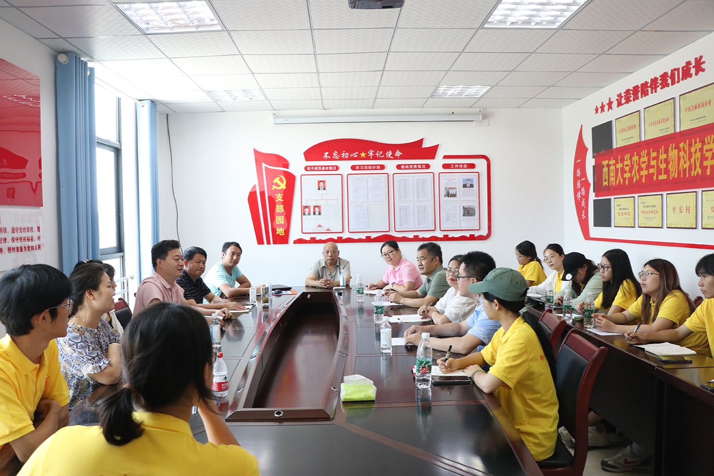 师生实践团与黄庄村干部开展在黄庄村党群服务中心的会议室开展调研座谈会。学院党委副书记郑莉佳、团委书记许莹竹、油菜研究领域专家徐新褔、高粱研究领域专家肖前林以及实践团的同学们与黄庄村驻村第一书记喻华、永兴镇派驻黄庄村主任赵荣启、农机专业合作社负责人何锡文等基层干部面对面深入交流,共同为黄庄村的产业发展、人才振兴、乡村治理等谋划与建言。
