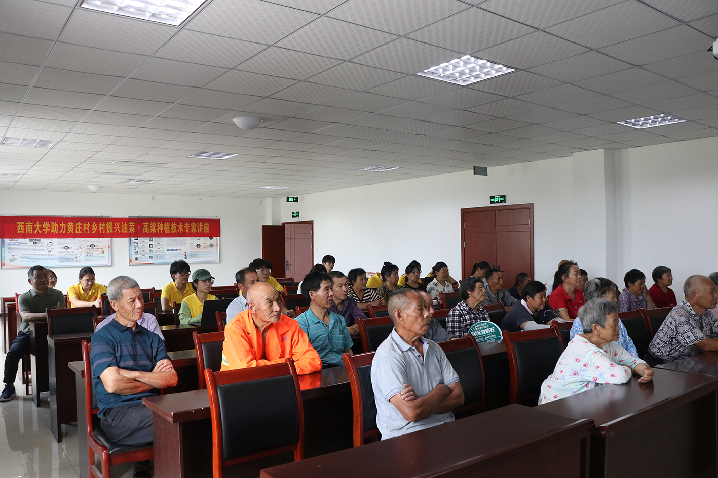为贯彻落实党的二十大精神,加快建设农业强国,助力黄庄村产业发展,7月3日上午,学院实践团为黄庄村农户开展了以“油菜高粱轮作,促进农户增收”为主题的专家技术讲座,分别就黄庄村油菜、高粱的种植技术展开培训和指导。