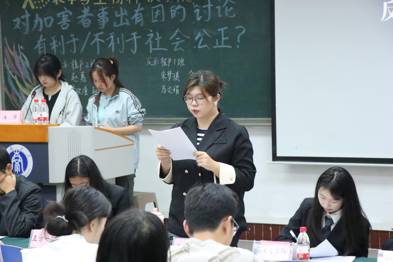 经过初赛与半决赛的激烈角逐,植物生产类1班与植物生产类2班成功晋级决赛。双方围绕“对加害者事出有因的讨论,有利于/不利于社会公正”这一辩题,展开了一场思想与逻辑的精彩交锋。