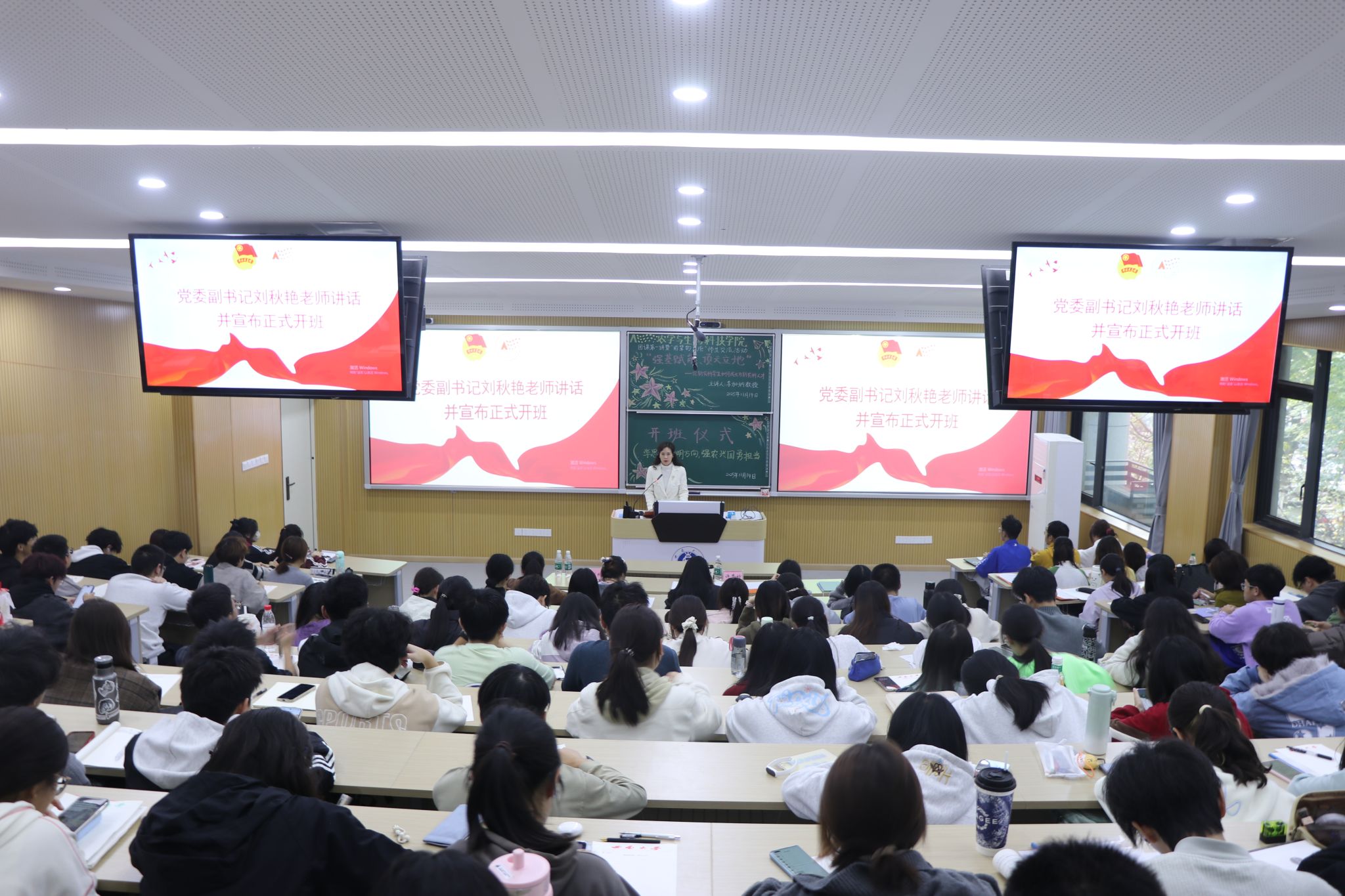 为引导广大团员和青年学习贯彻党的二十届四中全会精神,深刻领会习近平总书记关于青年工作的重要思想,落实团中央关于加强团员教育管理的要求,提升团员青年的政治素养、理论水平和实践能力,增强团组织的凝聚力和战斗力,培养一批理想信念坚定、能力素质过硬的青年骨干,学院团委举办“青马工程”培训班暨第十三期团校,并于2025年11月14日在31教209教室举行开班典礼。学院党委副书记刘秋艳、学院团委书记许莹竹出席开班典礼,来自学院团委及学生会等学生组织、各团支部的40余名院级“青马工程”学员与147名团校学员共同参加。开班典礼由学院团委组织部负责人李婧琪同学主持。