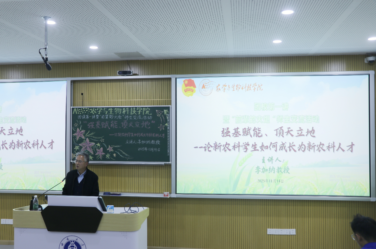 在随后的交流互动环节,同学们向李加纳教授踊跃提问交流,李老师均耐心细致地逐一回应。针对“如何应对科研道路上的难题”,他鼓励同学们坚守科研初心、坚定理想信念,以敢闯敢试的勇气直面挑战、攻坚克难;谈及“新时代农科学子应提升哪些综合素养”,他建议大家主动拓宽学术视野、拓展知识边界,积极涉猎跨学科前沿技术,着力打造复合型能力体系;面对部分同学对当下就业形势的担忧,李老师结合教育发展趋势与行业需求动态,引导同学们将个人能力提升与社会发展需求精准对接,在实践中磨合成长、在奋斗中实现价值。他着重强调,无论未来身处何种岗位,都应始终以提升核心竞争力为首要任务,努力成长为农业领域的精英人才,为行业发展筑牢中坚力量。