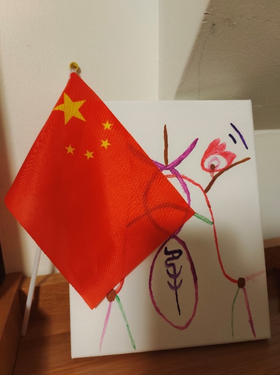 (在MSU收集到的国旗和手绘的西大LOGO)